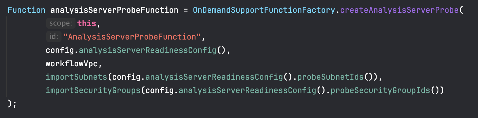 장애가 발생한 워크플로우는 AWS CDK in Java로 작성하였으며 OnDemandWorkflowStack.java에 정의되어 있다. 특히, Readiness Probe 역할을 수행하는 Lamda 함수는 어플리케이션 내부 로직이 아닌, CDK를 통해 주입받은 VPC, Subnet, Security Group(SG) 설정에 의해 네트워크 통신 경로가 결정된다.