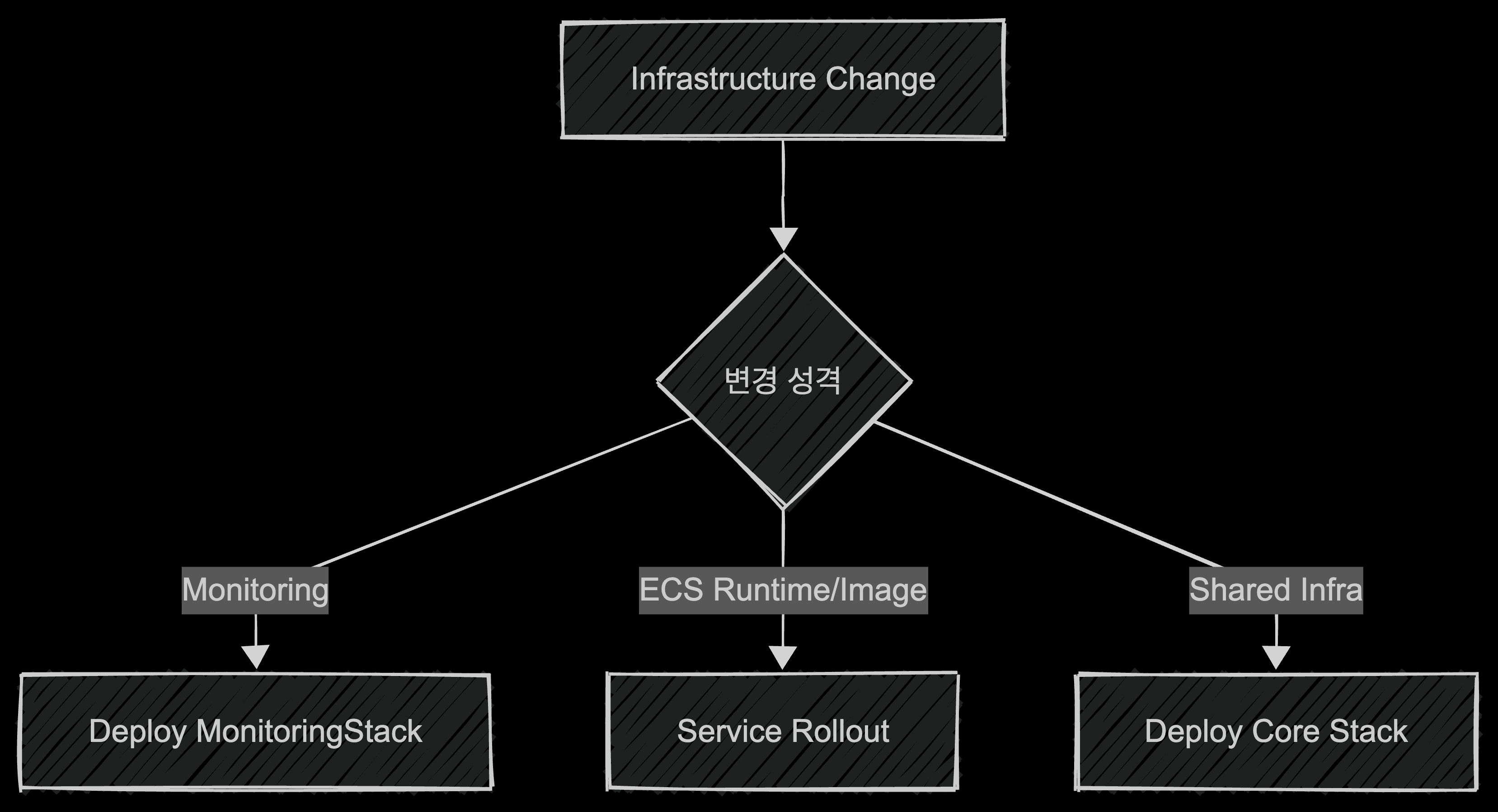 배포 속도를 줄인 또 하나의 중요한 포인트는 변경 성격이 다른 리소스를 같은 배포 단위에 태우지 않는 것이었다. 리소스의 성격이 전혀 다른데도 같은 배포 흐름 안에 묶여 있으면, 작은 변경에도 전체 배포가 필요 이상으로 무거워진다. 대표적인 예가 모니터링 리소스였다.